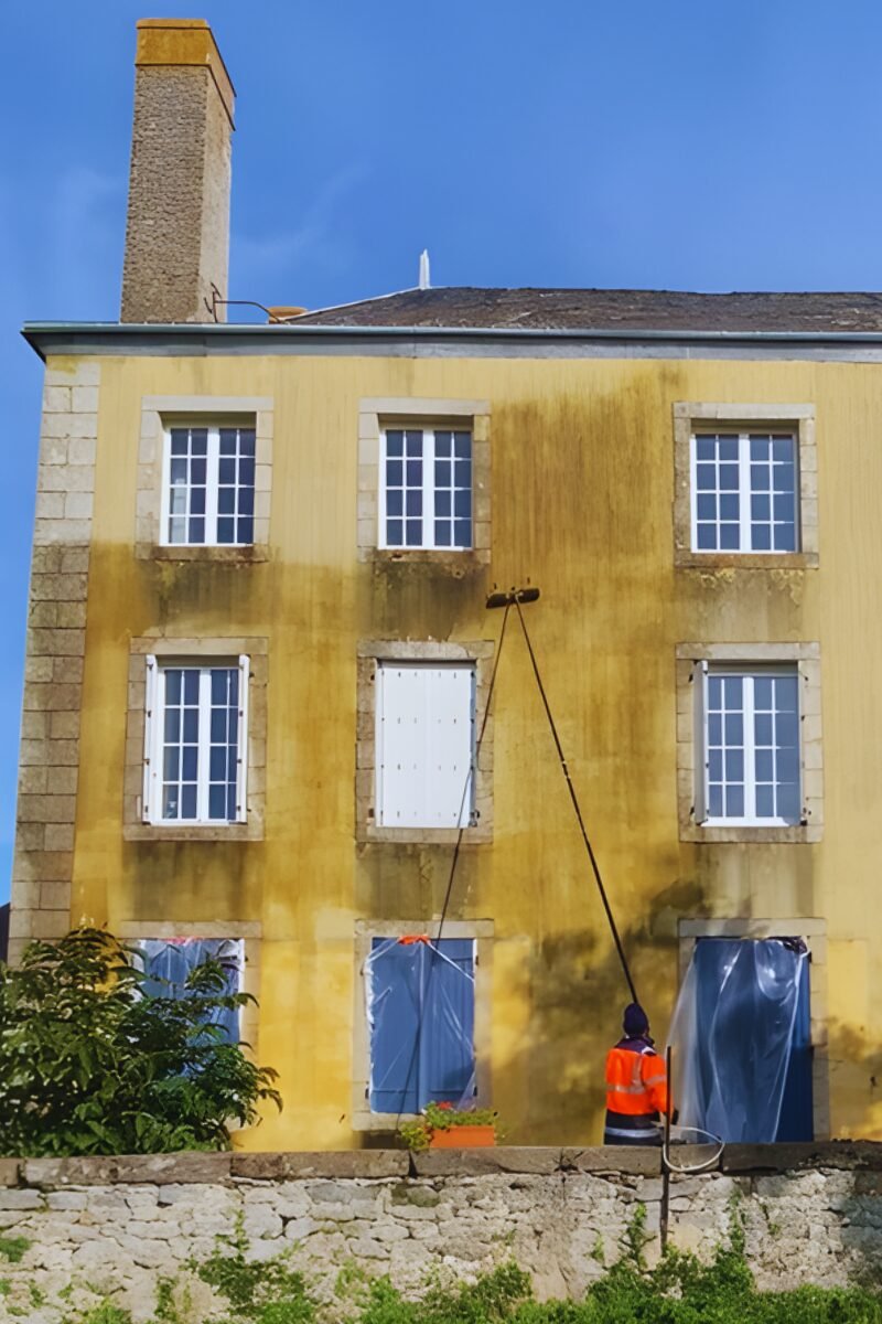 Nettoyage de la façade d’une maison de caractère à Saint-Aubin-de-Locquenay