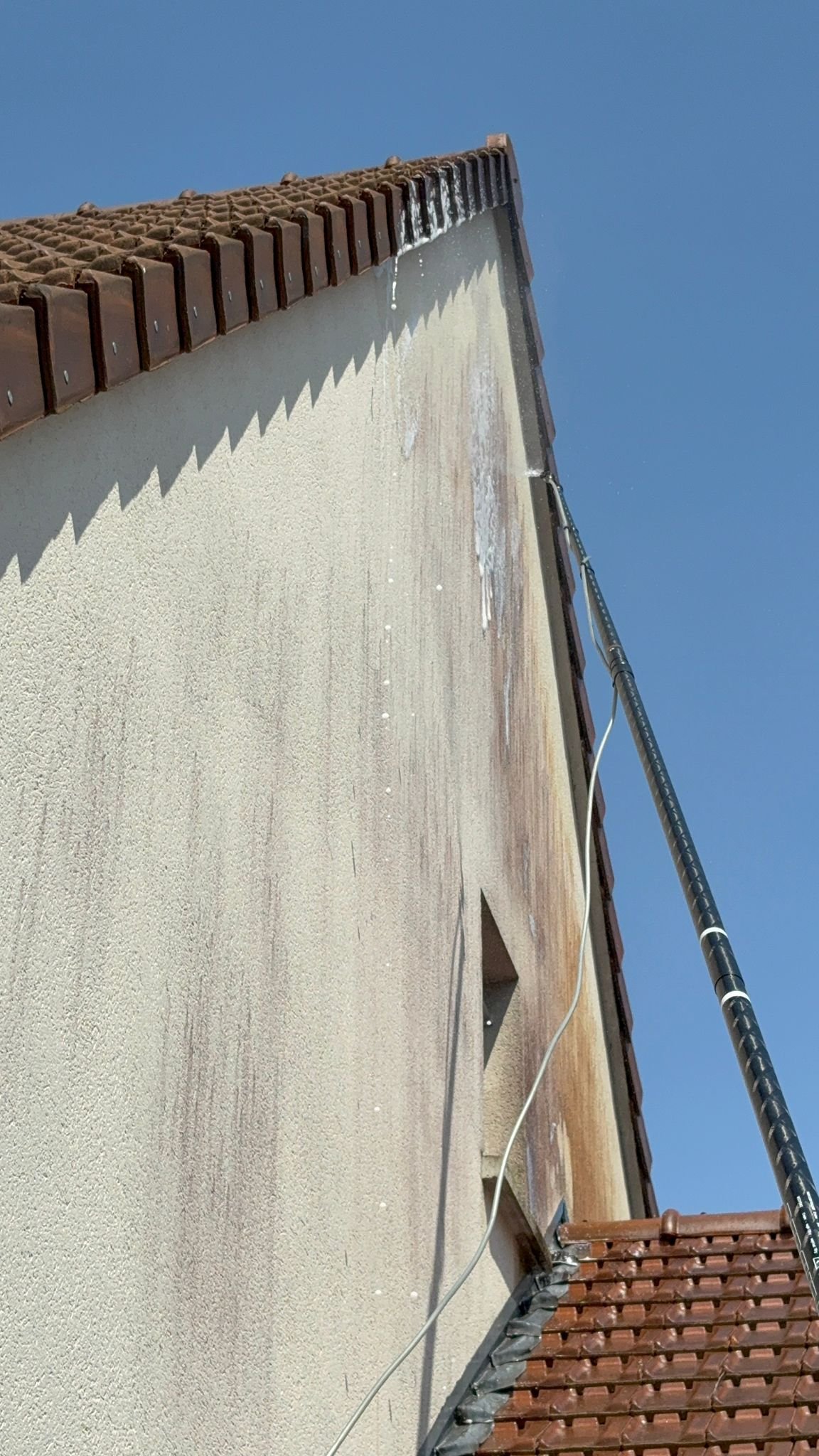 Nos techniques de nettoyage respectent vos surfaces : nous travaillons depuis le sol à l’aide d’une perche en carbone pouvant atteindre jusqu’à 20 mètres de hauteur. Cela nous permet d’éviter de marcher sur votre toit, réduisant ainsi les risques de dégradation et garantissant un résultat uniforme.